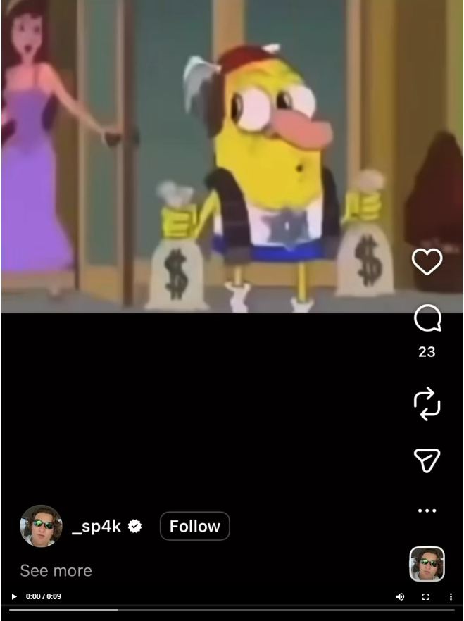 In that post, a cartoon made to approximate Spongebob Squarepants plays on common tropes used by anti-semitic people against Jews. The cartoon figure is holding two bags of money, wearing a “Star of David” necklace. A woman comes out and exclaims “there’s a Jew in our backyard! I can’t believe my “Jewcrow” didn’t work.” The camera pans to a scarecrow waiter with a portfolio that reads “TIPS PLEASE.” The woman kicks the cartoon in a pool and says “you’re getting baptized right now.”