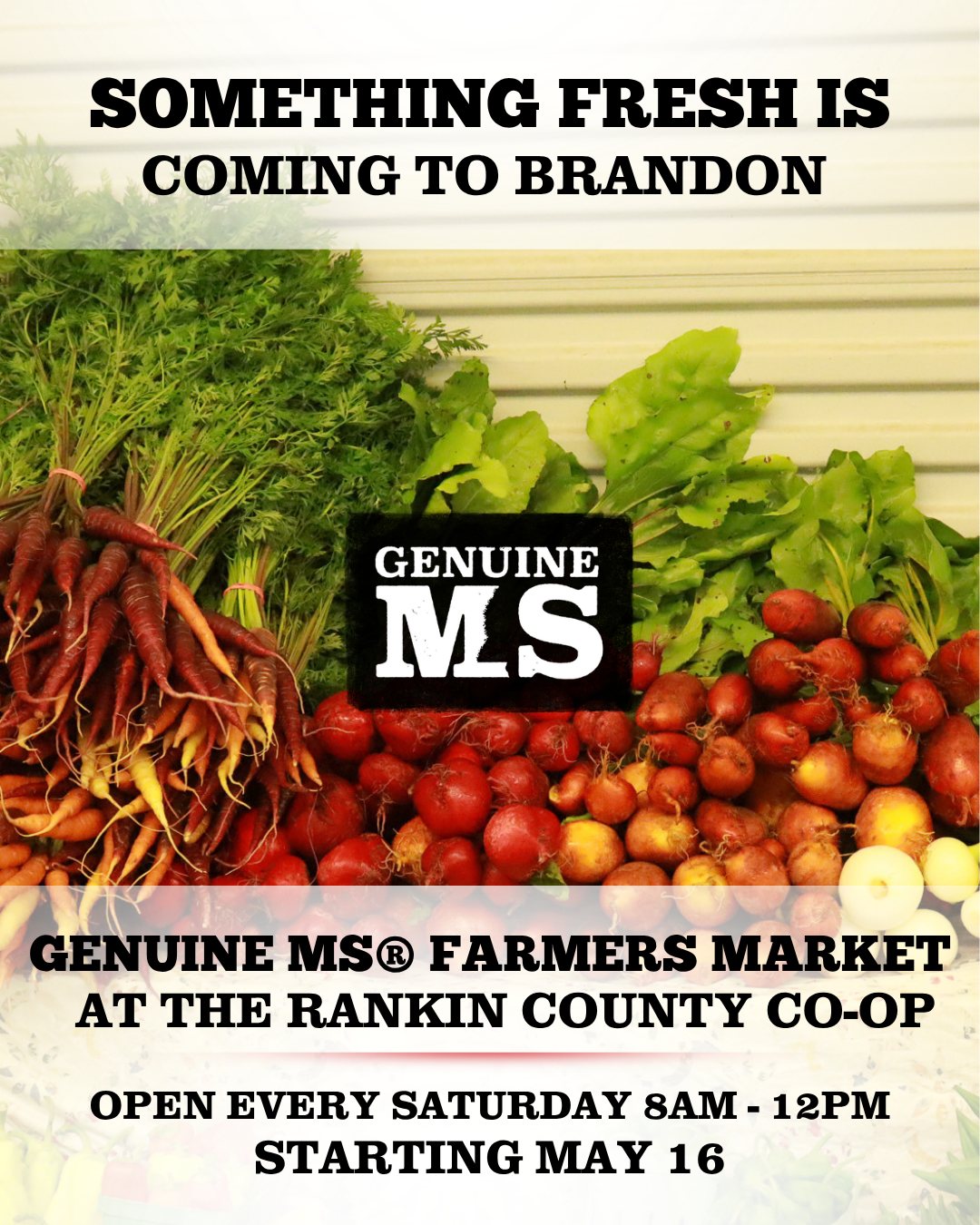 Commissioner of Agriculture and Commerce Andy Gipson announced the opening of the Genuine MS® Farmers Market at the Rankin County Co-op in Brandon next month. The seasonal farmers market is expected to open every Saturday from 8:00 a.m. to 12:00 p.m. beginning Saturday, May 16, 2026, and run through October 2026.
