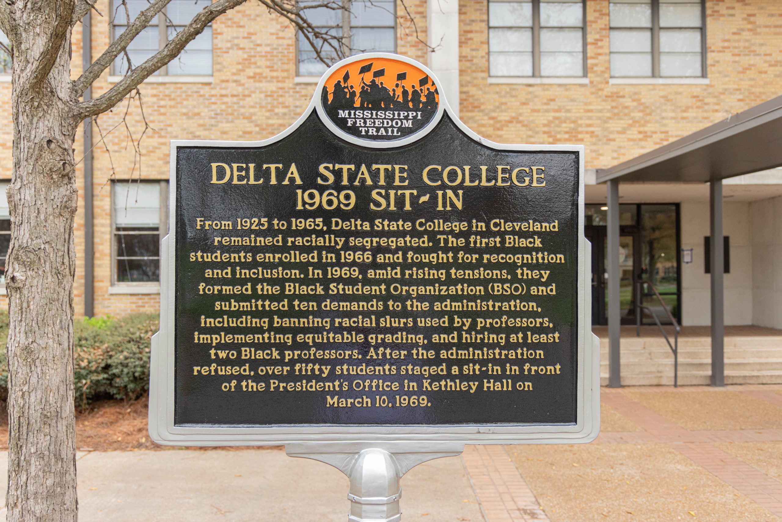 The Mississippi Freedom Trail marker now stands in front of Kethley Hall as a permanent recognition of the students whose courage helped shape Delta State’s history. For more information about the Mississippi Freedom Trail, visit www.mississippimarkers.com/civil-rights.html.