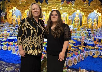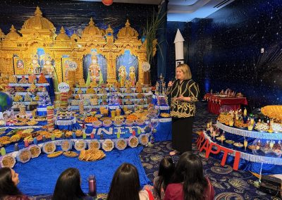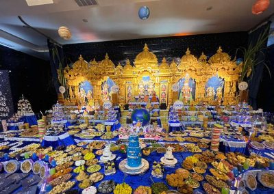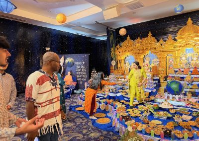 A central feature of the festival was the ‘Annakut,’ or “mountain of food,” in which hundreds of vegetarian dishes prepared by devotees of all ages were beautifully arranged and offered to the Divine. The Annakut served as a symbol of gratitude and devotion while also showcasing the dedication and collective spirit of the community.