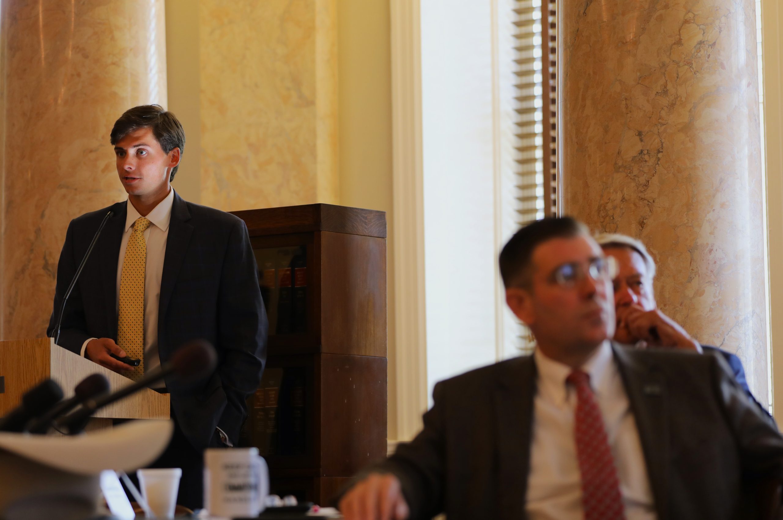 The Study Committee welcomed Staff Attorney Micah Brown of the National Agriculture Law Center (NALC) to its second meeting as a presenter. The NALC is a non-partisan source of objective, scholarly and authoritative agricultural and food law research and information. In his presentation, Brown highlighted Southern state laws and regulations relating to foreign land ownership.