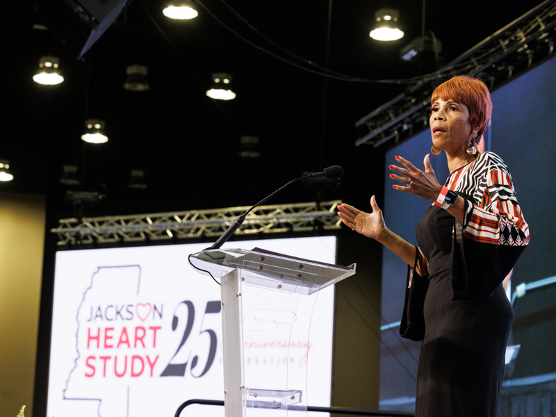 Dr. Sonja Fuqua, former manager of research and recruitment for the Jackson Heart Study, speaks during the study’s 25th anniversary ceremony.