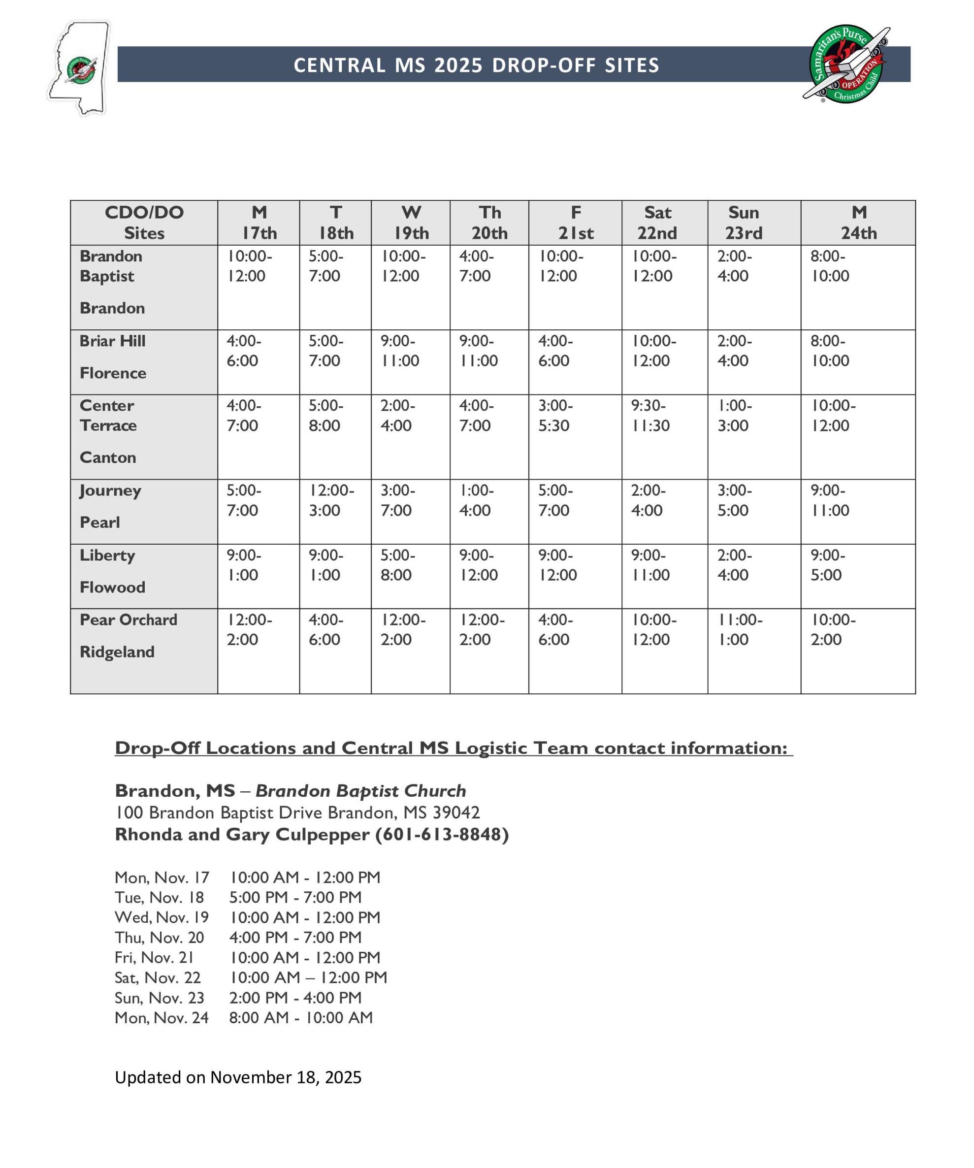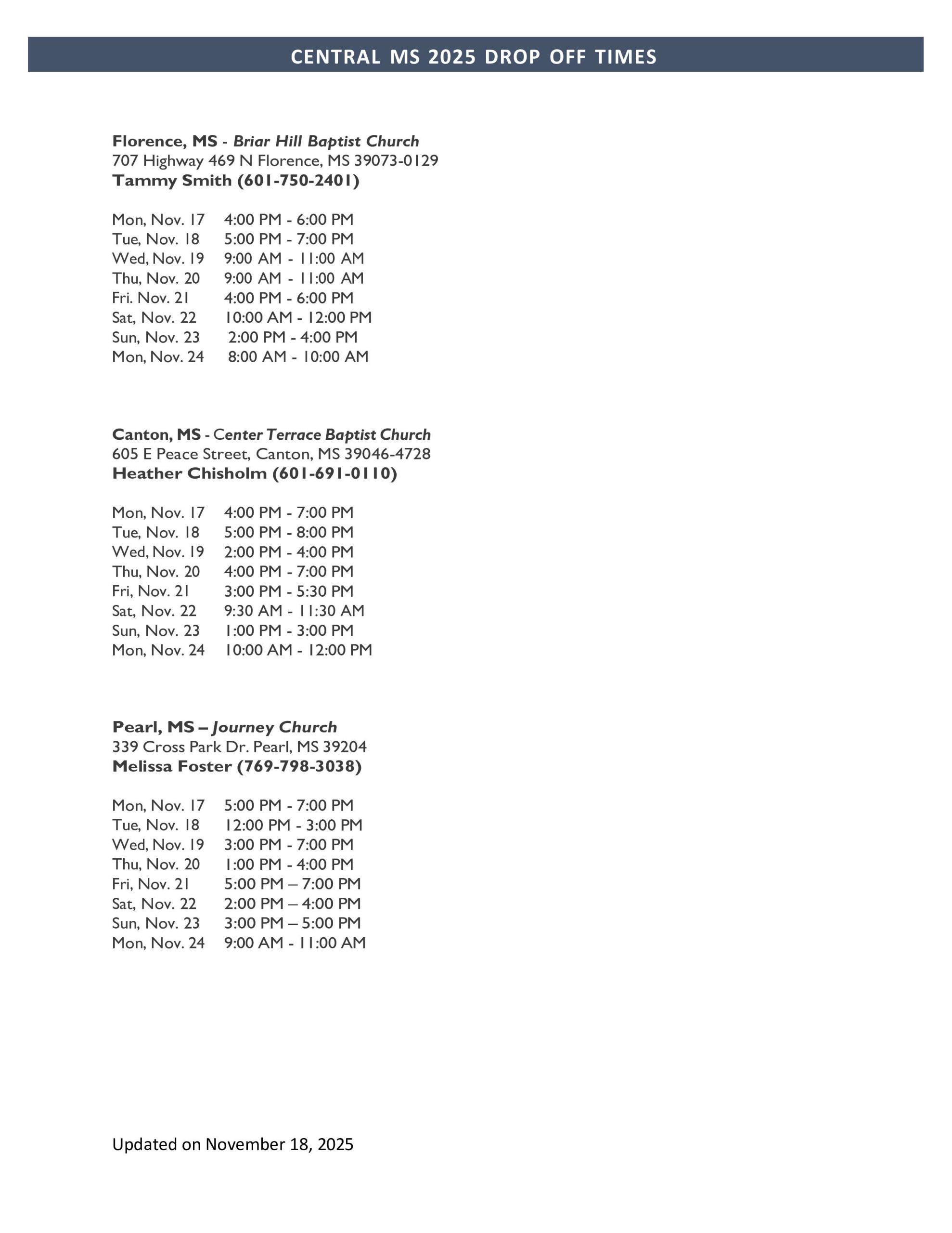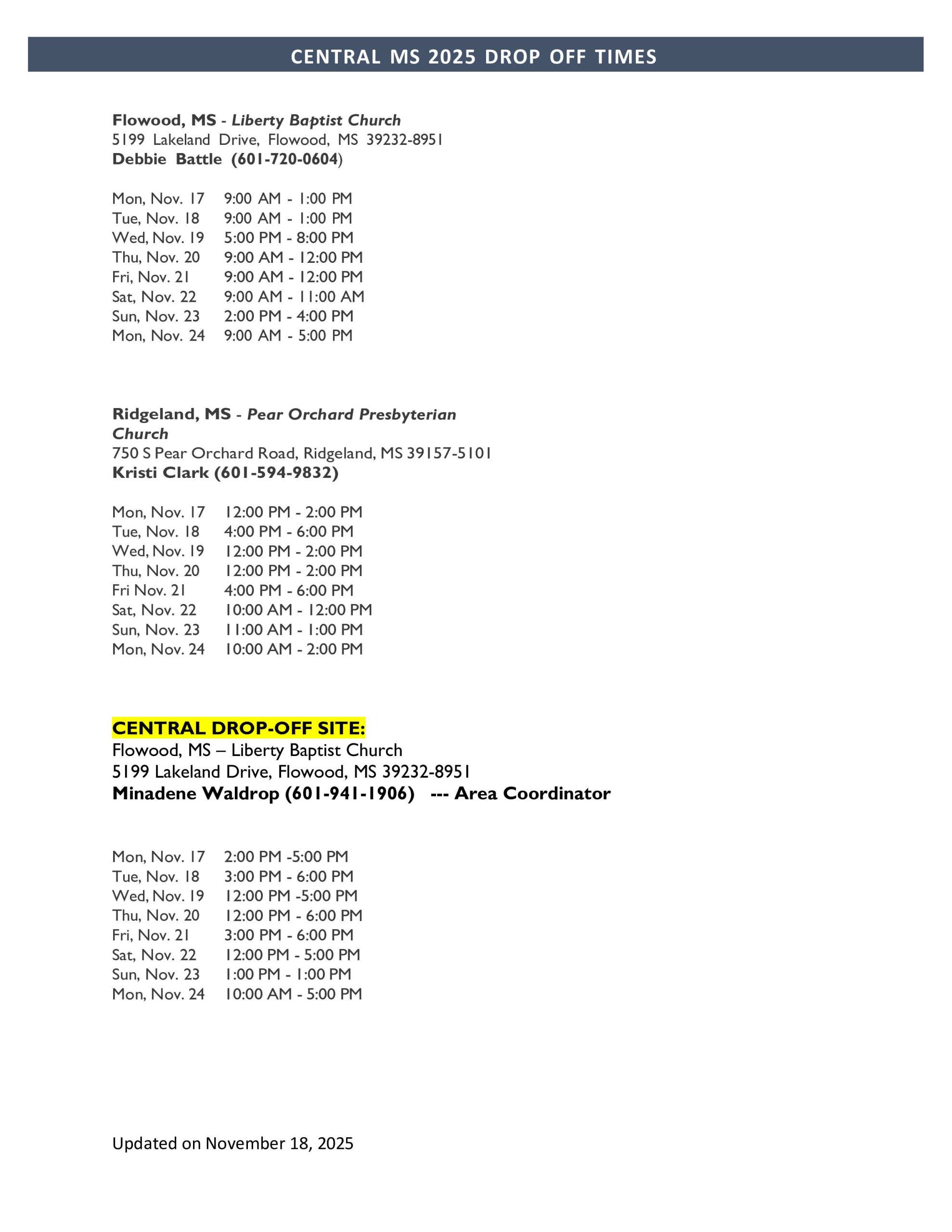 • Attached are the nearest drop-off sites with dates and hours of receiving