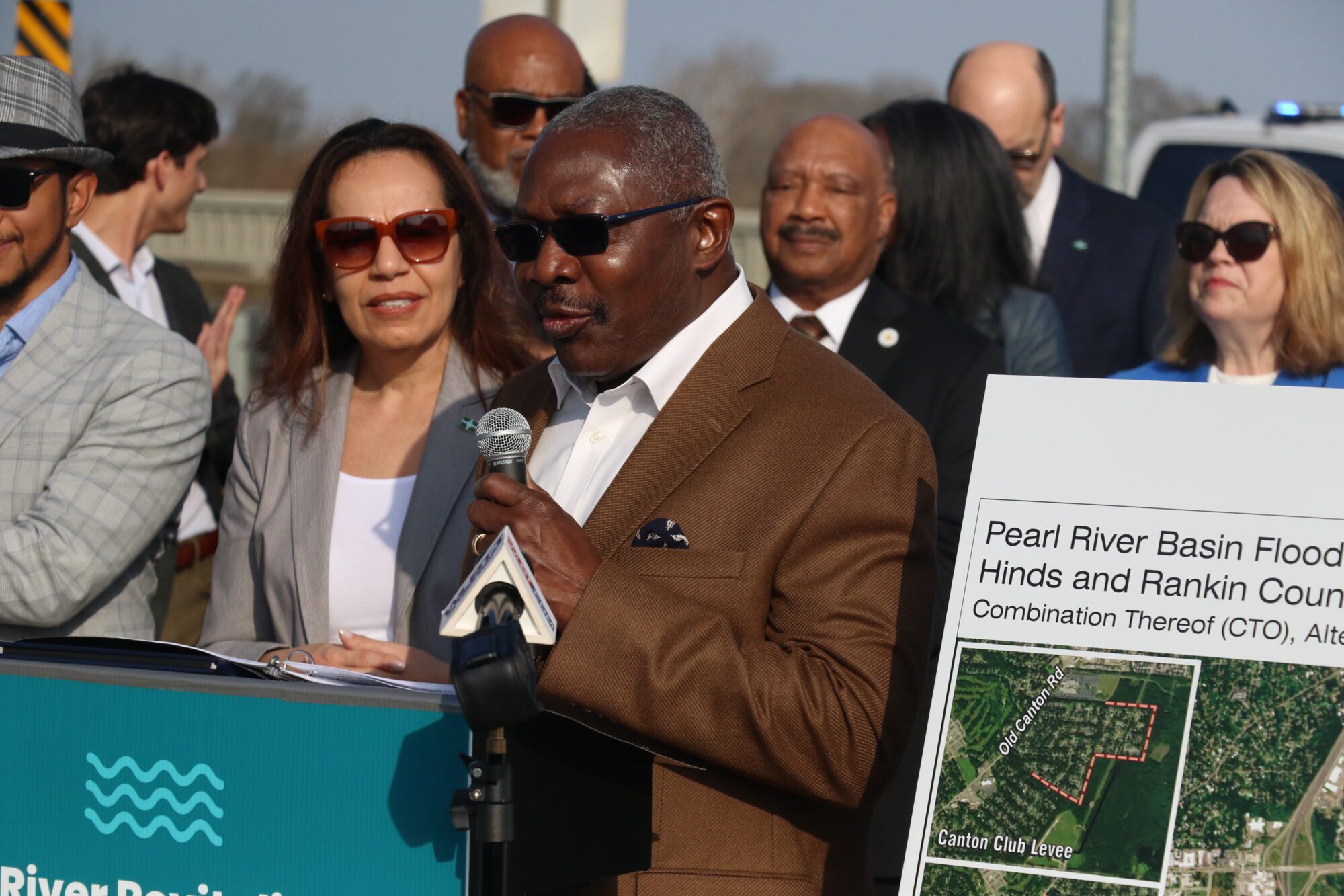 Jackson Mayor John Horhn speaks during Thursday’s announcement that the Pearl River Basin Flood Risk Management Project is moving forward. (Photo by Jeremy Pittari | Magnolia Tribune)