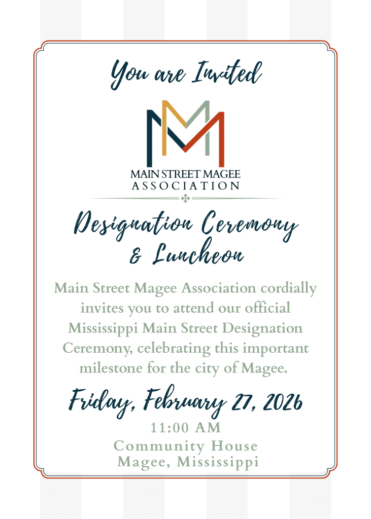 On Friday, Feb. 27 at 11:00 a.m., the Mississippi Main Street Association (MMSA) will designate the city of Magee, Miss. as an official Mississippi Main Street Community.
