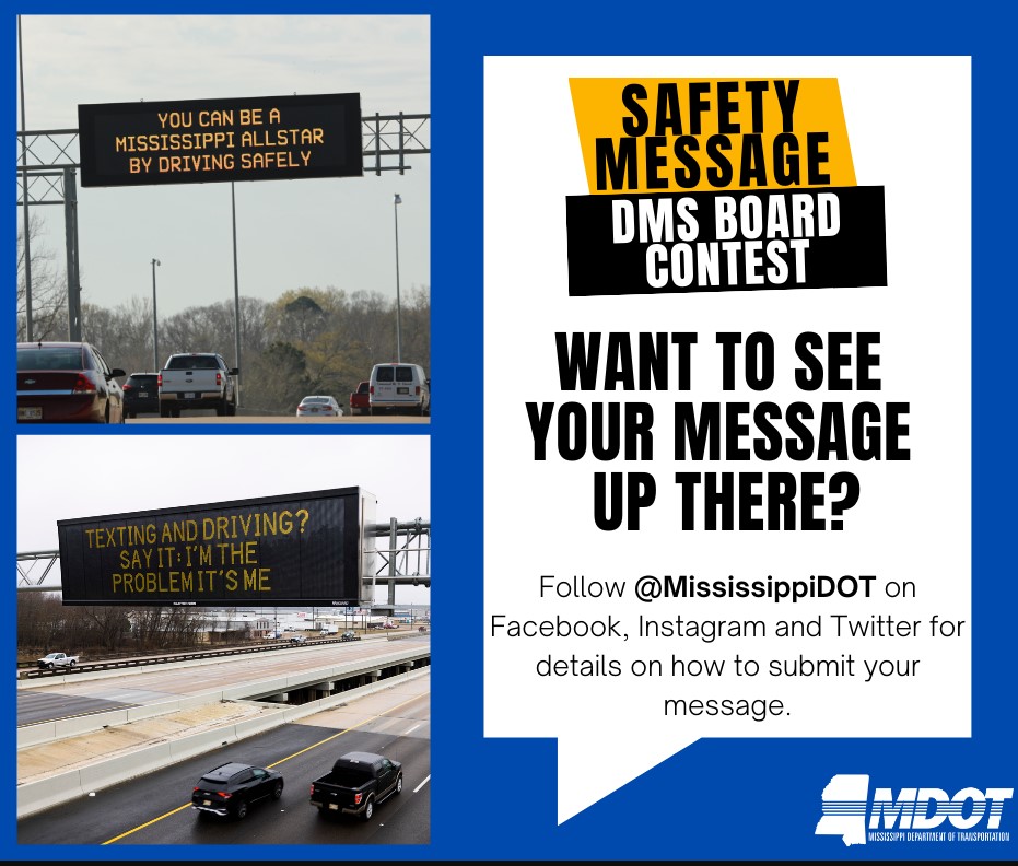 Follow @MississippiDOT on Facebook, Instagram and Twitter for details on how to submit your messages.