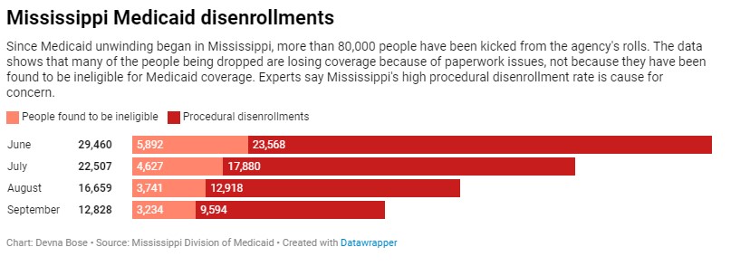 Nearly 13,000 Mississippians were kicked from Medicaid’s rolls in September during the most recent batch of disenrollments, while the agency’s backlog grows.