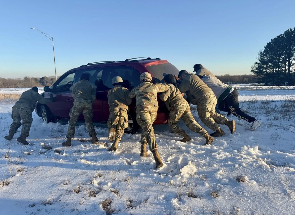 Mississippi National Mississippi National Guard Soldiers assist a stranded motorist during winter storm response operations in Mississippi, Jan. 29, 2026. Guardsmen are supporting route clearance, vehicle recovery, and lifesaving missions across multiple counties as part of the state’s response to severe winter weather. (Photos by the Mississippi National Guard)