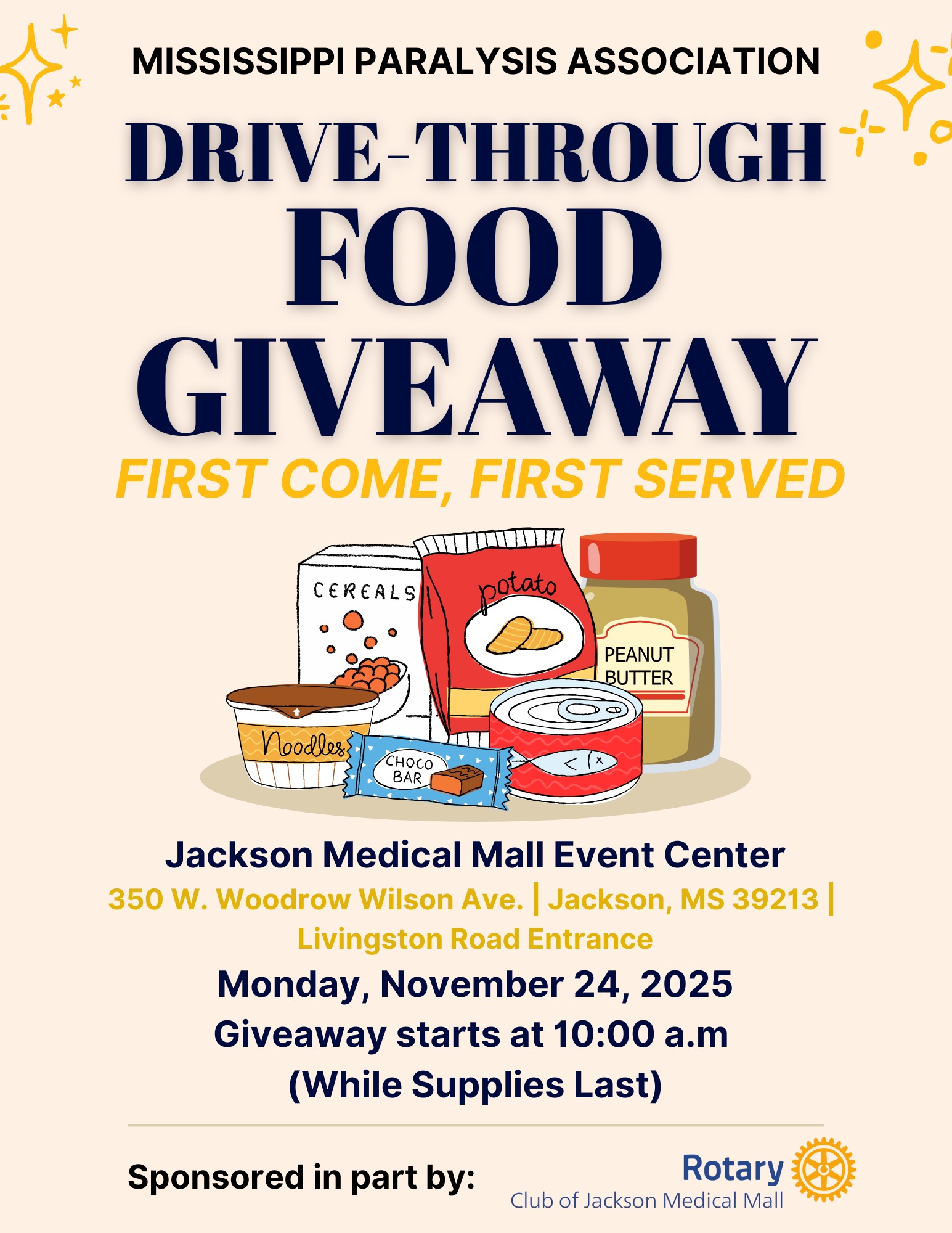 The Mississippi Paralysis Association, along with the Rotary Club of Jackson Medical Mall, is spreading holiday warmth this season with its Thanksgiving in a Box giveaway, offering boxes filled with non-perishable food items reminiscent of a traditional Thanksgiving meal.