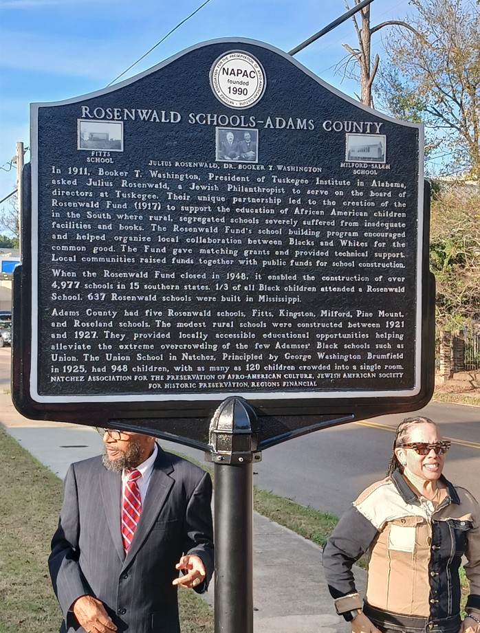 Bobby Dennis, the director of the Natchez Museum of African American History and Culture, said the marker unveiled in Natchez honors “the significant educational legacy of the Rosenwald Schools of Adams County.”