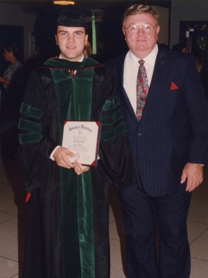 Dr. Mark Ladner’s father, Dr. George Ladner, stands with him on medical school graduation day, 1992. (Photo courtesy of Dr. Mark Ladner)